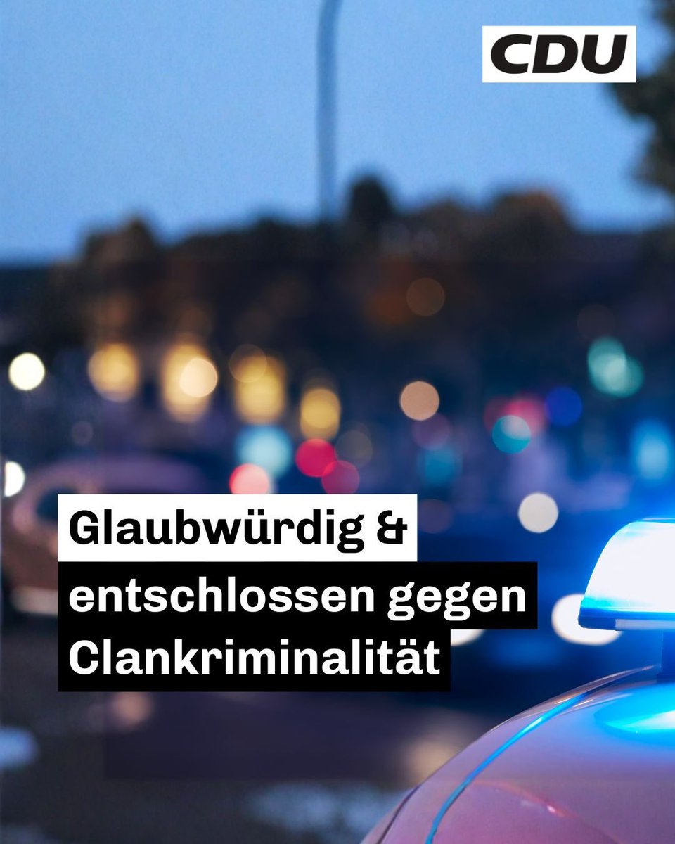 Als CDU gehen wir glaubwürdig und entschlossen gegen Clankriminalität vor. Organisierte Kriminalität hat in unserer Stadt nichts verloren. Daher geht der CDU-geführte Berliner Senat entschieden gegen kriminelle Clans und ihre Geschäfte vor.