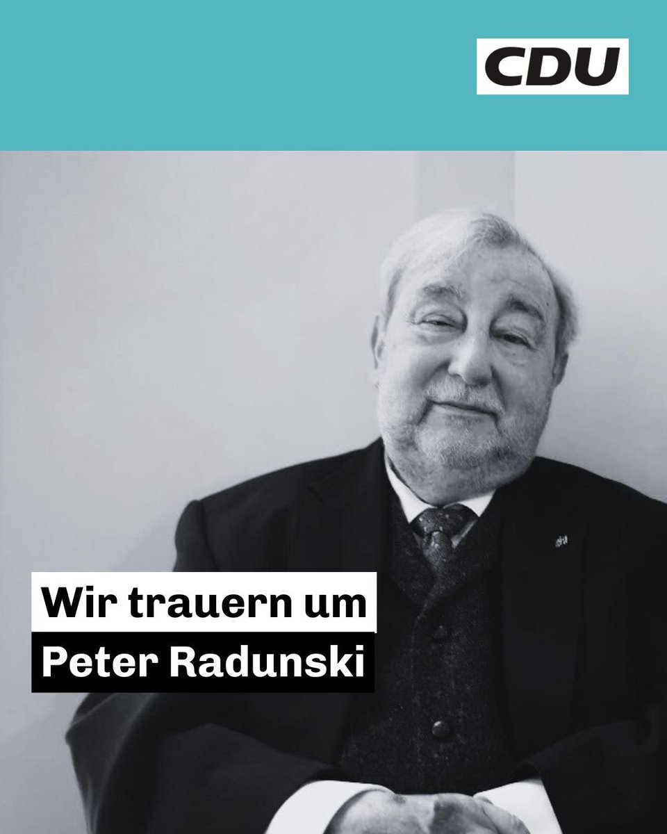 mehrEin großer Stratege geht: Abschied von Peter Radunski Die Nachricht vom Tod Peter Radunskis erfüllt uns mit tiefer Trauer. Mit ihm verliert die CDU nicht nur einen der brillantesten Wahlkampfmanager ihrer Geschichte, sondern auch einen profilierten Gestalter seiner Heimatstadt Berlin: von 1996 bis 1999 prägte er als Senator für Wissenschaft, Forschung und Kultur mit Weitsicht und Leidenschaft die Berliner Forschungs- und Kulturlandschaft. Radunski war der "Architekt" moderner politischer Kommunikation in Deutschland. Er verstand es wie kaum ein anderer, Themen auf den Punkt zu bringen und Kampagnen zu führen, die Geschichte schrieben, allen voran die Siege von Helmut Kohl. Seine Gabe, Tradition mit moderner Professionalität zu verbinden, bleibt ein Vorbild für Generationen von Politikgestaltern.